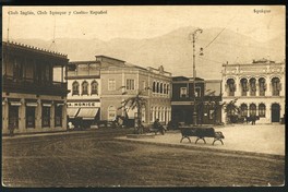Club Inglés, Club Iquique y Casino Español - Iquique [fotografía]. Iquique : [Editor no identificado , Entre 1905 y 1915]. 1 tarjeta postal : huecograbado, fotomecánico monocromo sobre papel ; 14 x 9 cm. .