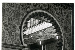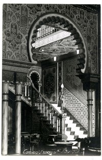 Casino Español, Iquique : [Extremo de la escala al segundo piso, ornamentada con una figura de estatua -lámpara, de inspiración clásica] [fotografía]. Iquique : [editor no identificado , entre 1915 y 1925]. 1 fotografía : monocromo gelatina sobre papel ; 8,5 x 13 cm. .