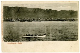 Bahía de Antofagasta [fotografía] / Carlos Brandt. Antofagasta : Carlos Brandt , [1900 y 1909]. 1 tarjeta postal : colotipo, fotomecánico monocromo sobre papel ; 14 x 9 cm. .