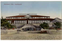 Automobil [sic] Club Antofagasta [fotografía] / Lemare & Co. Antofagasta : Lemare & Co. , 1926. 1 tarjeta postal : colotipo, fotomecánico policromo sobre papel ; 14 x 9 cm. .