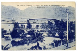 Materias: Historia - Fotografías - Arquitectura - Calles - Antofagasta (Chile) - Tarjetas postales - Arquitectura del paisaje - Avenida del Brasil (Antofagasta, Chile) - Parque Brasil (Antofagasta, Chile) - Mattia - Carvalho - Regimiento Esmeralda (Chile) - Regimiento Reforzado Nº 20 "La Concepción" (Chile)