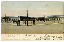 Caldera, Plaza de Armas [fotografía] / Brandt, Carlos. Taltal : Brandt, Carlos , 1907. 1 tarjeta postal : colotipo, fotomecánico policromo sobre papel ; 14 x 7,5 cm. .