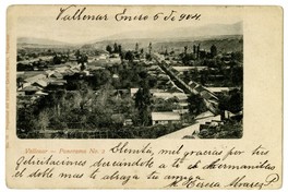 Vallenar - Panorama N° 2 [fotografía] / Carlos Brandt. Vallenar : Carlos Brandt , 1904. 1 tarjeta postal : colotipo, fotomecánico monocromo sobre papel ; 14 x 9 cm. .