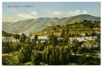 Vista General del Balneario [Jahuel] [fotografía] / Balneario Jahuel. San Felipe : Balneario Jahuel, 1941. 1 tarjeta postal : colotipo, fotomecánico policromo sobre papel ; 13,7 x 8,8 cm. .