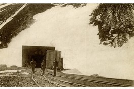 Cordillera de Los Andes - Chile, Entrada Túnel Cumbre [o Caracoles] [fotografía] / Hume y Walker. [Los Andes] : Hume y Walker , [Entre 1910 y 1920]. 1 tarjeta postal : huecograbado, fotomecánico monocromo sobre papel ; 13,7 x 8,5 cm. .