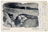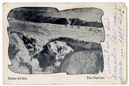 Puente del Inca, Paso Uspallata [fotografía] Argentina : [Editor no identificado], 1919. 1 tarjeta postal : medio tono, fotomecánico monocromo sobre papel ; 10,6 x 7,3 cm. .
