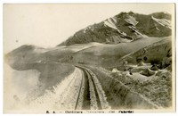R.A. - Cordillera, Cremallera : [Vía férrea y cremallera central tipo ABT] [fotografía] / Col. Fajardo. Argentina : Col. Fajardo, [Entre 1915 y 1925]. 1 tarjeta postal : fotografía, monocromo gelatina sobre papel ; 13,5 x 8,5 cm. .