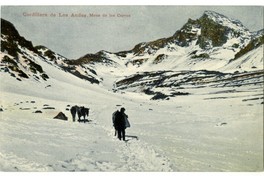 Cordillera de Los Andes . Mesa de los Carros [fotografía] / C. Kirsinger & Cia. [Valparaíso] : C. Kirsinger & Cia. , [entre 1905 y 1915]. 1 tarjeta postal : colotipo, fotomecánico policromo sobre papel ; 14 x 8,8 cm. .