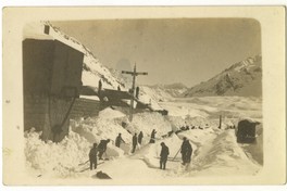 [Grupo de hombres despejando la nieve, Estación Puente del Inca] [fotografía]. Mendoza : [Editor no identificado , Entre 1915 y 1925]. 1 tarjeta postal : fotografía, monocromo, gelatina sobre papel ; 11,5 x 7,5 cm. .