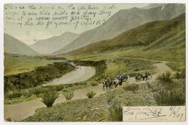 Camino para Chile [fotografía] / José König y Cía. Mendoza : José König y Cía. , 1907. 1 tarjeta postal : medio tono, fotomecánico policromo sobre papel ; 13,8 x 8,8 cm. .