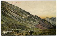 Juncal Cordillera : [Entre otras construcciones, se observa el Hotel Hispa[no], sector Juncal, camino internacional Chile-Argentina] [fotografía] / C. Kirsinger & Cia. Valparaíso : Kirsinger & Cia. , [entre 1901 y 1909]. 1 tarjeta postal : colotipo, fotomecánico policromo sobre papel ; 13,6 x 8,9 cm. .