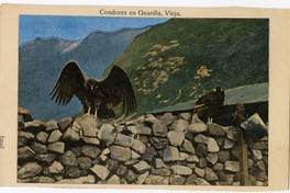 Condores en Guardia, Vieja [fotografía]. Chile : [Editor no identificado , Entre 1912 y 1922]. 1 tarjeta postal : medio tono, fotomecánico policromo iluminado sobre papel ; 12 x 8 cm. .