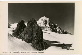 Portillo (Chile), Vista del Cerro Juncal [fotografía]. Chile : [Editor no identificado , 194u]. 1 fotografía : monocromo, gelatina sobre papel ; 11 x 8 cm. .
