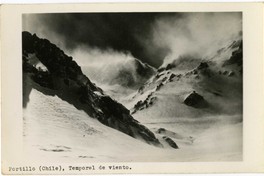Portillo (Chile), Temporal de viento [fotografía]. Chile : [Editor no identificado , Entre 1940 y 1950]. 1 tarjeta postal : fotografía, monocromo, gelatina sobre papel ; 11,5 x 7,8 cm. .