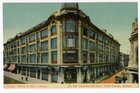 Santiago, Edificio de Gath y Chaves [fotografía] / Adolfo Conrads. Santiago : Adolfo Conrads , 1922. 1 tarjeta postal : medio tono, fotomecánico policromo sobre papel ; 13,8 x 8,3 cm. .