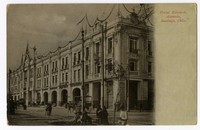 Portal Edwards, Alameda. Santiago, Chile [fotografía] / Eggers & Cia. Chile : Eggers & Cia. , [entre 1909 y 1915]. 1 tarjeta postal : colotipo, fotomecánico monocromo sobre papel ; 13,8 x 8 cm. .