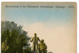 Monumento à los Hermanos Amunàtegui. Santiago. Chile. [fotografía] / J. M. Sepúlveda V. Santiago : J. M. Sepúlveda V. , [Entre 1912 y 1916]. 1 tarjeta postal : colotipo, fotomecánico policromo sobre papel ; 9 x 14 cm. .