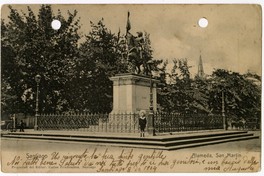 Materias: Solari, Rosa P. de - Penco, Angel - Daumas, Louis-Joseph - Edificios, estructuras, etc - Niños (1-6 años) - Santiago (Chile : Ciudad) - Padres de la Patria - Avenida Libertador Bernardo O'Higgins (Santiago, Chile) - San Martín, José de - Moda - Escultor - Militares - Escultores - Tarjetas postales - Monumentos - Fotografías - Historia