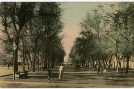 La Alameda Santiago, Chile [fotografía]. Santiago : [Editor no identificado] , 1907. 1 tarjeta postal : colotipo, fotomecánico policromo sobre papel ; 13,7 x 8,7 cm. .