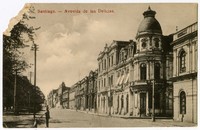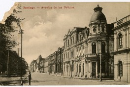 Santiago - Avenida de las Delicias [fotografía] / Hume y Ca. Santiago : Hume y Ca. , [Entre 1910 y 1920]. 1 tarjeta postal : colotipo, fotomecánico monocromo sobre papel ; 13,7 x 8,7 cm. .