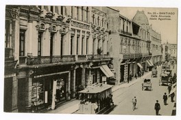 Materias: Tranvías - Santiago (Chile : Ciudad) - Carros de sangre - Carlos Kirsinger y Cía - Historia - Fotografías - Arquitectura - Tarjetas postales - Comercio minorista - Calle Ahumada (Santiago, Chile) - Moda