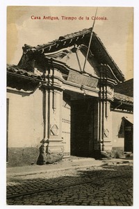Casa antigua, tiempo de la Colonia : [Fachada de la Posada de Santo Domingo] [fotografía] Hume y Ca.
