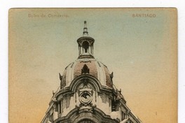 Bolsa de Comercio, Santiago [fotografía]. Santiago : [Editor no identificado , Entre 1920 y 1929]. 1 tarjeta postal : colotipo, fotomecánico monocromo sobre papel ; 9 x 14 cm. .