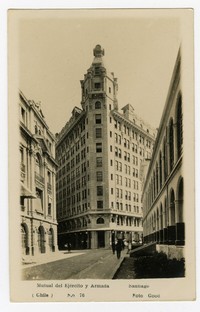 Mutual del Ejército y Armada Santiago (Chile) [fotografía] / Foto Cood. Santiago : Foto Cood , 1930. 1 tarjeta postal : fotografía, monocromo, gelatina sobre papel ; 7,5 x 12,3 cm. .