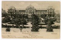 [Plaza de Armas de Santiago; el Gran Hotel de Francia, y vista parcial del Edificio Edwards (izquierda)] [fotografía] / C. Kirsinger & Cia. Santiago : C. Kirsinger & Cia. , 1907. 1 tarjeta postal : colotipo, fotomecánico monocromo sobre papel ; 14 x 9 cm. .