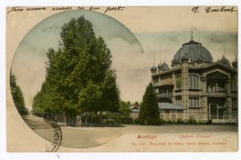 Santiago Quinta Normal [fotografía] / Santiago : Brandt, Carlos, 1906. 1 tarjeta postal : colotipo, fotomecánico policromo sobre papel .