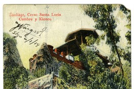 Santiago, Cerro Santa Lucía Cumbre y Kiosco [fotografía] / C. Kirsinger & Cia. Valparaíso : C. Kirsinger & Cia. , 1919. 1 tarjeta postal : colotipo, fotomecánico policromo sobre papel ; 8,8 x 13,8 cm. .