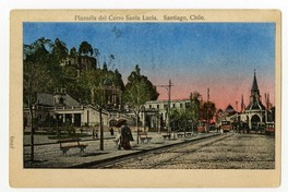 Plazuela del Cerro Santa Lucia. Santiago, Chile [fotografía] / Eggers & Cía. Valparaíso : Eggers & Cía. , [entre 1909 y 1915]. 1 medio tono : fotomecánico policromo iluminado sobre papel ; 14 x 9 cm. .