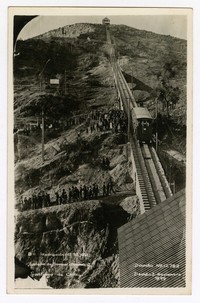 [Funicular del San Cristóbal Santiago de Chile] : Inscripción 12782. Estudio de Samuel Alvarez, Santiago de Chile. Decreto N° 12782 Decreto 3-Noviembre de 1949 [fotografía]. Santiago : [Editor no identificado , Entre 1925 y 1935]. 1 tarjeta postal : fotografía, monocromo, gelatina sobre papel ; 8 x 13 cm. .