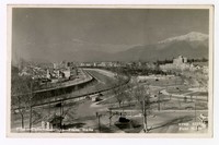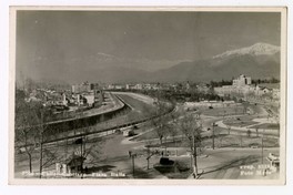 Materias: Cordillera de los Andes - Plaza Italia (Santiago, Chile) - Edificios, estructuras, etc - Santiago (Chile : Ciudad) - Historia - Fotografías - Arquitectura - Puentes - Tarjetas postales - Urbanismo - Río Mapocho (Chile)