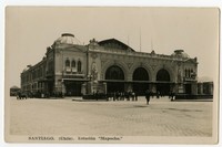 Santiago. (Chile). Estación "Mapocho" [fotografía]. Santiago : [Editor no identificado , Entre 1915 y 1925]. 1 tarjeta postal : fotografía, monocromo, gelatina sobre papel ; 14 x 9 cm. .
