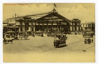 Materias: Carruajes - Estación Central (Santiago, Chile) - Empresa de los Ferrocarriles del Estado (Chile) - Tarjetas postales - Edificios históricos - Homenajes - Ferrocarriles - Arquitectura - Fotografías - Tranvías - ESTACIONES DE FERROCARRIL - Edificios, estructuras, etc - Santiago (Chile : Ciudad) - Edificios y estructuras - Schneider et Cie. (Le Creusot, Francia) - Historia