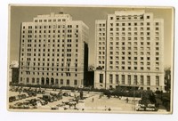Chile - Santiago. Ministerio de Hacienda y Hotel Carrera [fotografía] / Foto Mora. Santiago : Foto Mora , 1946. 1 tarjeta postal : fotografía, monocromo, gelatina sobre papel ; 13,3 x 8,5 cm. .
