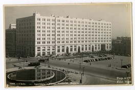 2.608.- Chile - Santiago - Plaza General Bulnes. [fotografía] / Foto Mora. Santiago : Foto Mora , [entre 1935 y 1945]. 1 tarjeta postal : fotografía, monocromo, gelatina sobre papel ; 13,3 x 8,5 cm. .