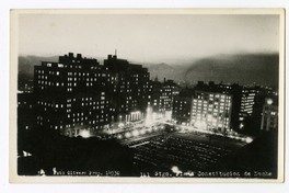 Stgo. Plaza Constitución de Noche [fotografía] / Foto Olivero. Santiago : Foto Olivero , [Entre 1950 y 1960]. 1 tarjeta postal : medio tono, fotomecánico monocromo sobre papel ; 13 x 8 cm. .