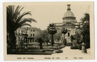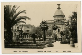 Jardin del Congreso Santiago de Chile : [y la Catedral de Santiago] [fotografía] / Foto Cood. Santiago : Foto Cood , [Entre 1919 y 1929]. 1 tarjeta postal : fotografía, monocromo, gelatina sobre papel ; 12,5 x 7,5 cm. .