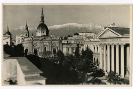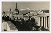 Chile, Santiago Congreso Nacional : [Vista parcial del edificio y jardines del ex Congreso Nacional, calle Compañía, y vista posterior de la Catedral de Santiago, calle Bandera y, otros] [fotografía] / Fot. Mora. Santiago : Fot. Mora , [Entre 1939 y 1949]. 1 tarjeta postal : fotografía, monocromo, gelatina sobre papel ; 13,2 x 8,3 cm. .