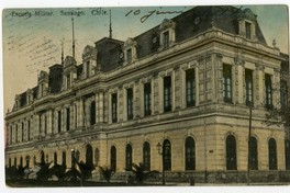 Materias: Tarjetas postales - Santiago (Chile : Ciudad) - Edificios, estructuras, etc - Villeneuve, Víctor Henry de - Escuela Militar del Libertador General Bernardo O'Higgins (Chile) - Molina, Graciela - Palacio Alcázar (Santiago, Chile) - Historia - Fotografías - Chile - Arquitectura - Edificios históricos