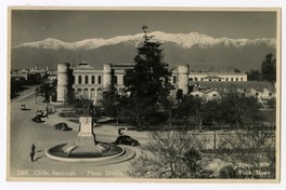 Materias: Edificio Bicentenario del Ejército de Chile (Santiago, Chile) - Coll y Pí, Antonio - Historia - Santiago (Chile : Ciudad) - Automóviles - Cordillera de los Andes - Tarjetas postales - Edificios históricos - Monumentos - Ercilla y Zúñiga, Alonso de - Arquitectura - Chile - Fotografías - Edificios, estructuras, etc - PLAZA ERCILLA (SANTIAGO, CHILE) - Arsenales de Guerra (Chile)