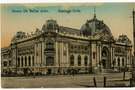 Museo de Bellas Artes. Santiago Chile [fotografía] / Hume y Ca., Santiago : Hume y Ca. , [Entre 1920 y 1929]. 1 tarjeta postal : colotipo, fotomecánico monocromo sobre papel ; 13,8 x 8,8 cm. .