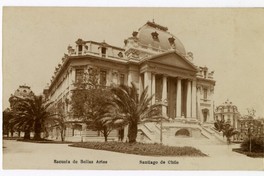 Escuela de Bellas Artes Santiago de Chile [fotografía]. Santiago : [Editor no identificado , Entre 1912 y 1920]. 1 tarjeta postal : colotipo, fotomecánico monocromo sobre papel ; 13,8 x 8 cm. .