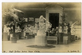 Hall Bellas Artes. Stgo. Chile. [fotografía] / S. Lobos E. Santiago : S. Lobos E. , 1931. 1 tarjeta postal : colotipo, fotomecánico monocromo coloreado sobre papel ; 13,87 x 8,3 cm. .