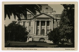 No. 608 Santiago, Palacio de Bellas Artes [fotografía] / Musalem Hnos. Santiago : Musalem Hnos. , [entre 1950 y 1959]. 1 tarjeta postal : fotografía, monocromo, gelatina sobre papel ; 12,8 x 8 cm. .