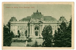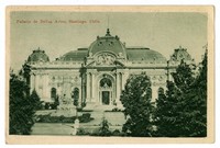 Palacio de Bellas Artes, Santiago. Chile [fotografía]. Santiago : [Editor no identificado , Entre 1919 y 1929]. 1 tarjeta postal : fotografía, monocromo, gelatina sobre papel ; 13,8 x 8,7 cm. .