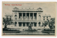 Plaza del Teatro Municipal, Santiago [fotografía] / Edición Marinetti. Santiago : Edición Marinetti , [1928]. 1 tarjeta postal : colotipo, fotomecánico monocromo sobre papel ; 13,5 x 8,3 cm. .