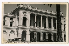 Santiago (Chile) Teatro Municipal [fotografía]. Santiago : [Editor no identificado, entre 1950 y 1960]. 1 tarjeta postal : fotografía, monocromo, gelatina sobre papel ; 12,7 x 7,7 cm. .